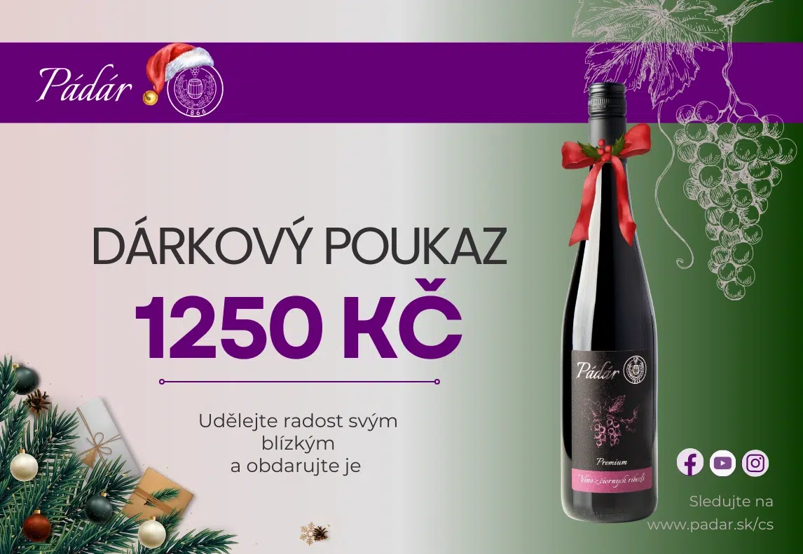 Objevte prémiová vína vinařství Pádár se speciálním dárkovým poukazem! Vyberte si mezi 250, 750, 1250 nebo 1500 Kč . Poukaz můžete využít k nákupu kvalitních vín z naší nabídky, která nabízí jedinečný zážitek pro milovníky kvalitních vín. Perfektní dárek, ideální pro každou příležitost!